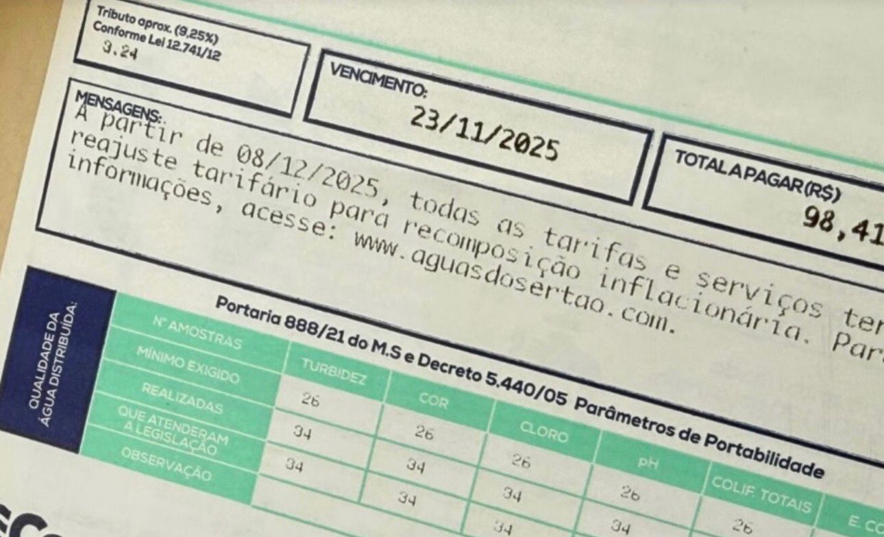A concessionária Águas do Sertão informou que vai aplicar um reajuste de 7,124% nas tarifas de água e esgoto em Alagoas, mas a diferença entre as datas divulgadas ao público tem gerado dúvidas entre os consumidores.