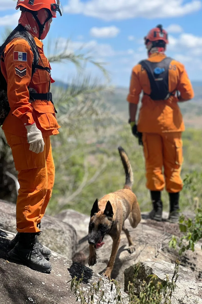 As buscas também tiveram o reforço da guarnição AR-58 de Santana e da equipe do Canil, com a atuação da cadela Rory, utilizada nas varreduras da área.