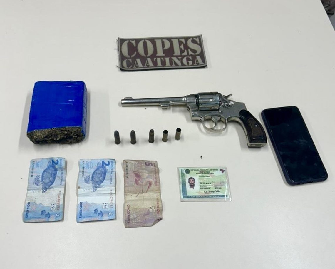 Ainda conforme a polícia, a suspeita autorizou a entrada dos agentes no imóvel e indicou os locais onde estavam escondidos os materiais ilícitos. Durante as buscas, foram encontrados um revólver calibre 38, munições, cerca de 370 gramas de maconha, dinheiro em espécie e um telefone celular.