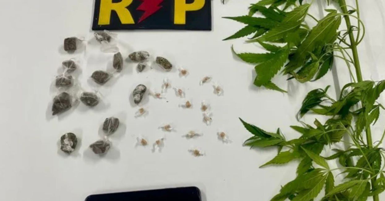 De acordo com informações apuradas pela Del 89, a guarnição foi acionada após moradores relatarem som em volume excessivo e possível movimentação relacionada à venda de entorpecentes na Rua Isaías Vieira Rego. Ao chegar ao local, os militares encontraram porções de maconha e crack dentro do imóvel, próximas a uma janela.