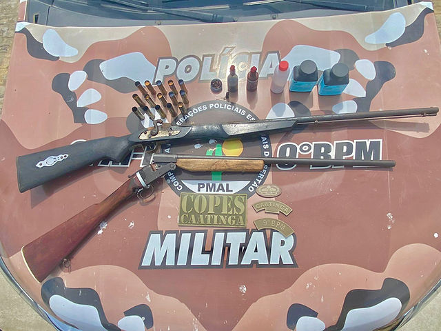 Em posse irregular de duas armas, o autor foi conduzido para Centro Integrado de Segurança Pública – CISP de Batalha – AL para as devidas providências.