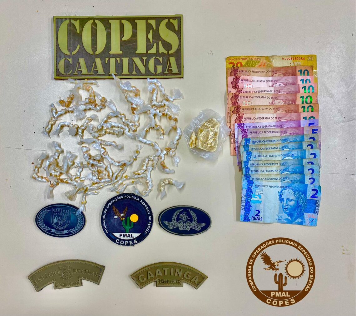 Na noite da última terça-feira (12) a guarnição da polícia militar (COPES caatinga) estava em patrulhamento na cidade de Batalha em uma área tipicamente conhecida pelo histórico de ocorrências de tráfico de drogas, quando ao entrar em uma rua, se deparou com um suspeito que estava quase em frente a sua residência e quando avistou as viaturas se aproximando tentou empreender fuga, porém foi logrado êxito na captura de José de Assis, conhecido como Cói, encontrando em sua posse o valor de R$ 104,00 (cento e quatro reais em espécie) e 200 pedrinhas pequenas e 1 pedra grande de substância análoga a crack. Em posse do material e dando ciência ao autor de sua prisão pelo flagrante delito do crime de Tráfico Ilícito de Entorpecentes, a guarnição foi até a Delegacia Plantonista da cidade de Batalha para a tomada de providências.