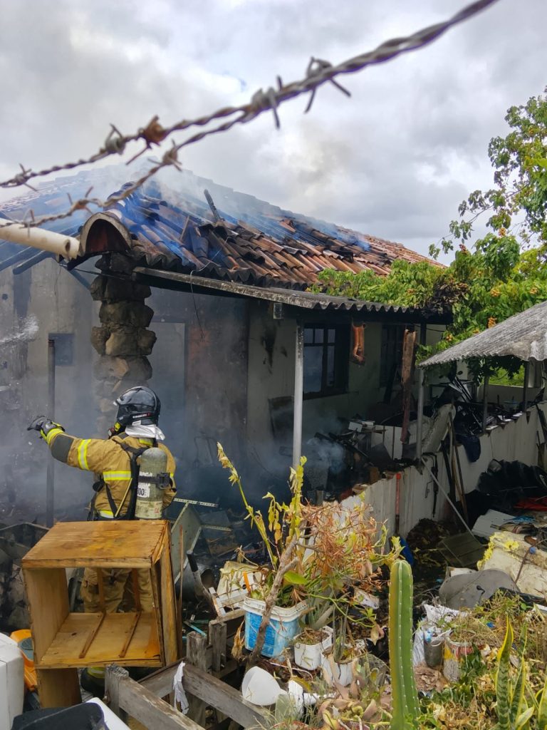 Ao chegarem ao local, os bombeiros constataram que o morador já estava fora da residência, apresentando apenas escoriações leves. Ainda assim, diante da possibilidade de outras pessoas no interior, a equipe dividiu-se entre o combate às chamas e a realização de buscas.