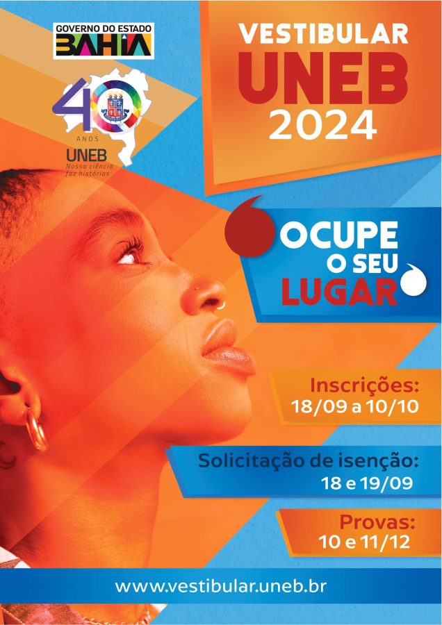 A Universidade do Estado da Bahia está com inscrições abertas, até o dia 10 de outubro, para o Vestibular UNEB 2024. Os interessados devem garantir participação, exclusivamente, pelo site www.vestibular.uneb.br.