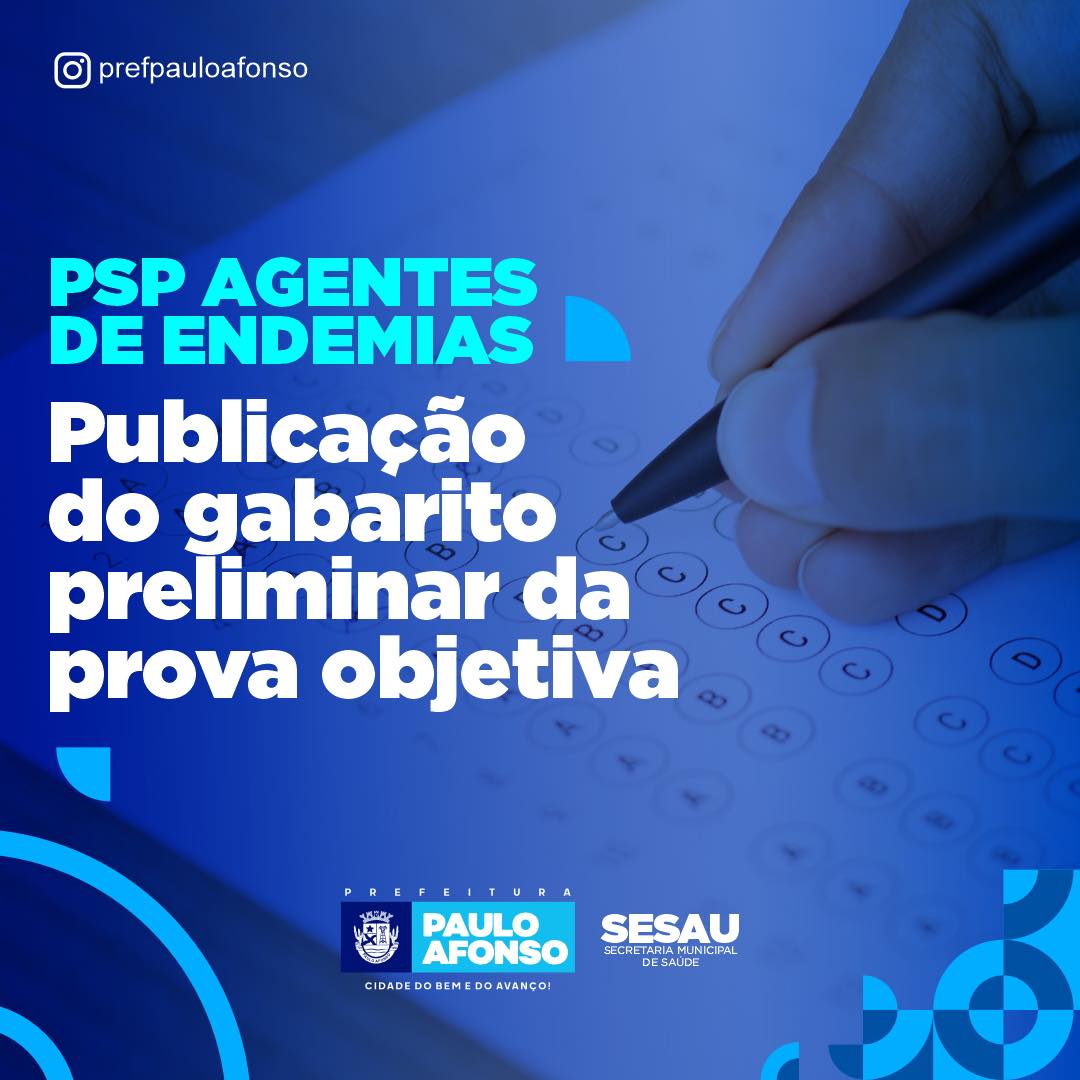 A Comissão Examinadora do Processo Seletivo Público para contratação de Agente de Combate as Endemias, Edital nº 01/2023, nomeada por meio da Portaria Municipal nº 183/23 e alterada pela Portaria Municipal nº 359/2023, nos termos do que dispõe o Edital nº 01/2023, divulga o Gabarito preliminar da prova objetiva aplicada no dia 13 de Agosto