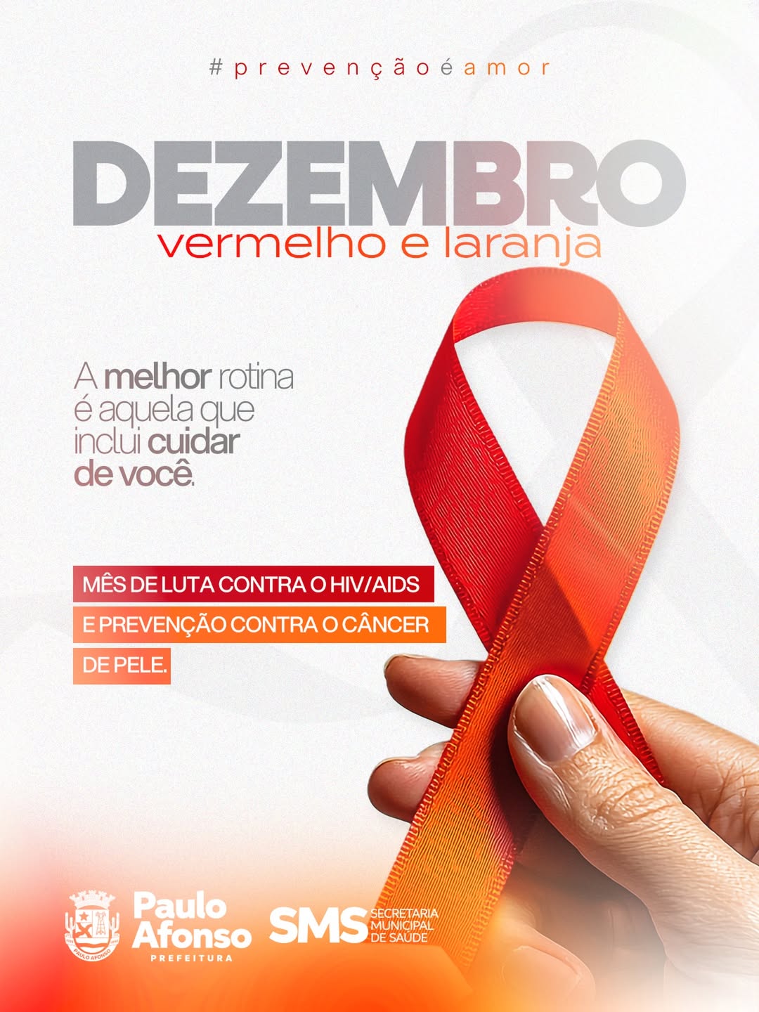 A Prefeitura de Paulo Afonso promoverá, no dia 13 de dezembro, uma grande ação alusiva ao Dezembro Laranja, campanha nacional de conscientização sobre a prevenção e o diagnóstico precoce do câncer de pele. O evento acontecerá das 9h às 14h, no Centro de Especialidades.