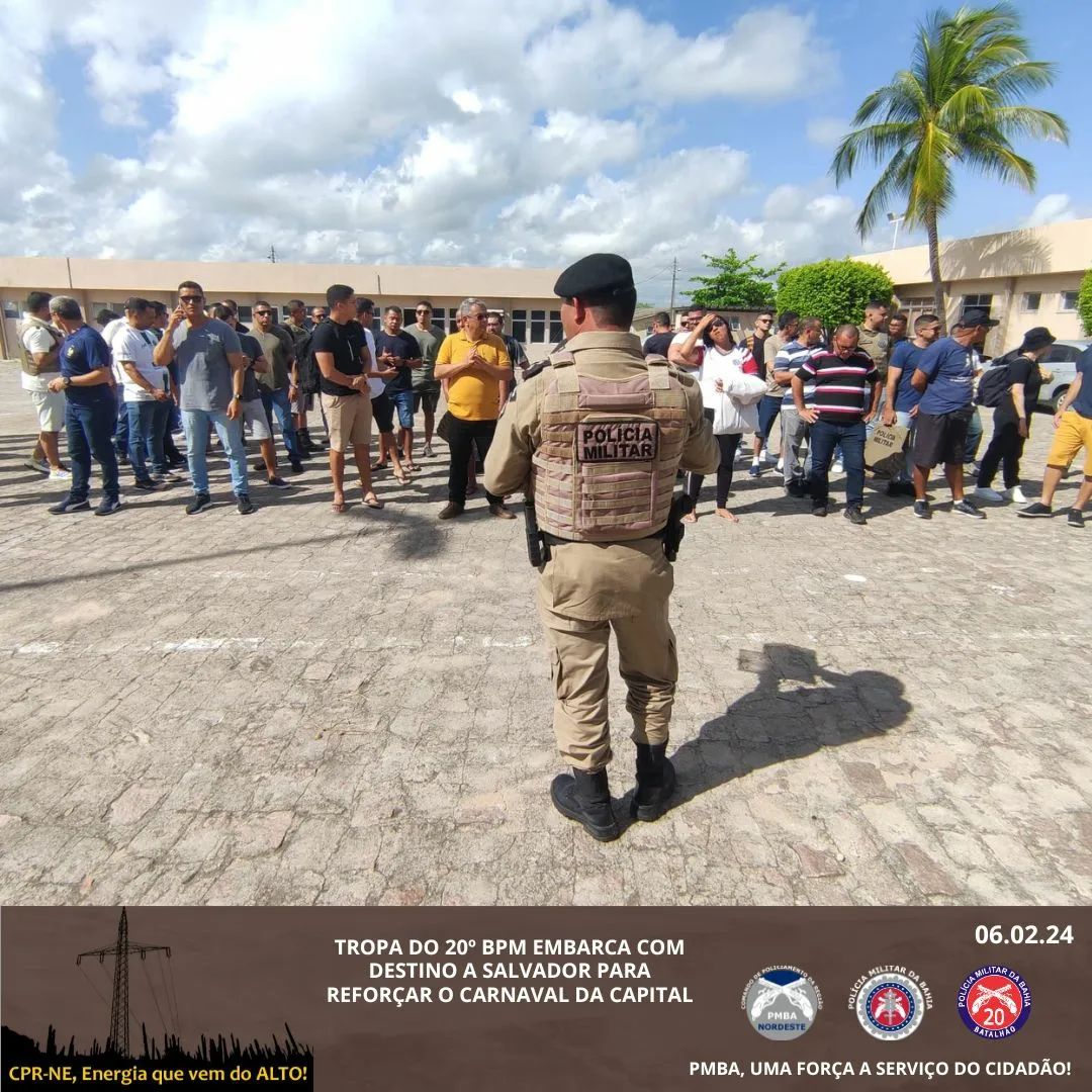 Nesta terça-feira (06), às 09h, uma parte significativa da tropa do 20º BPM embarcou com destino a Salvador para fortalecer as operações de segurança durante o Carnaval 2024. O Capitão PM Campos supervisionou o embarque, garantindo a conferência do efetivo.