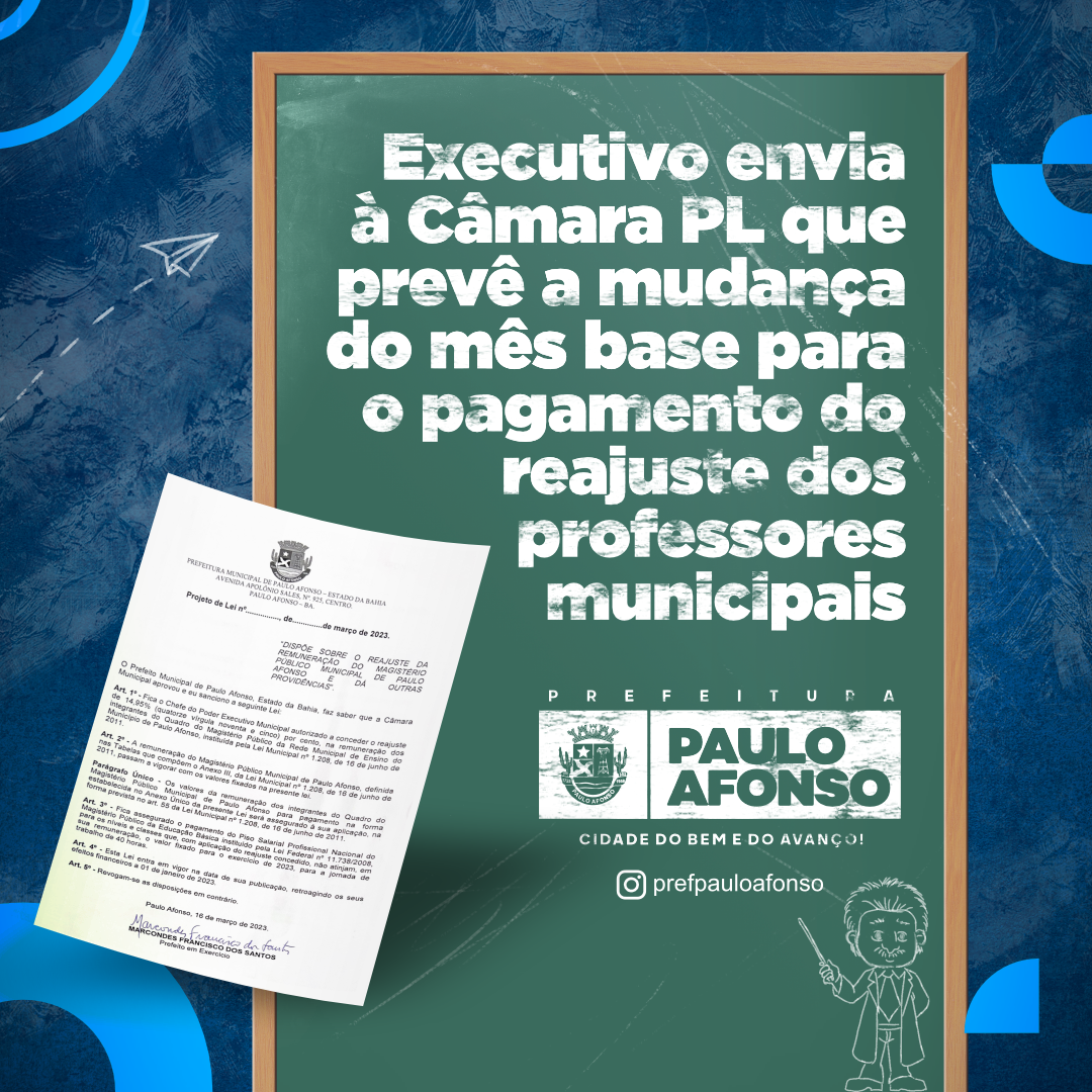 Nesta segunda-feira (20), o prefeito em exercício, Marcondes Francisco, enviou à Câmara de Vereadores o Projeto de Lei que prevê a mudança do mês base para o pagamento do aumento dos professores da rede municipal de ensino. O documento ressalta que a data base mude do mês de maio para janeiro.