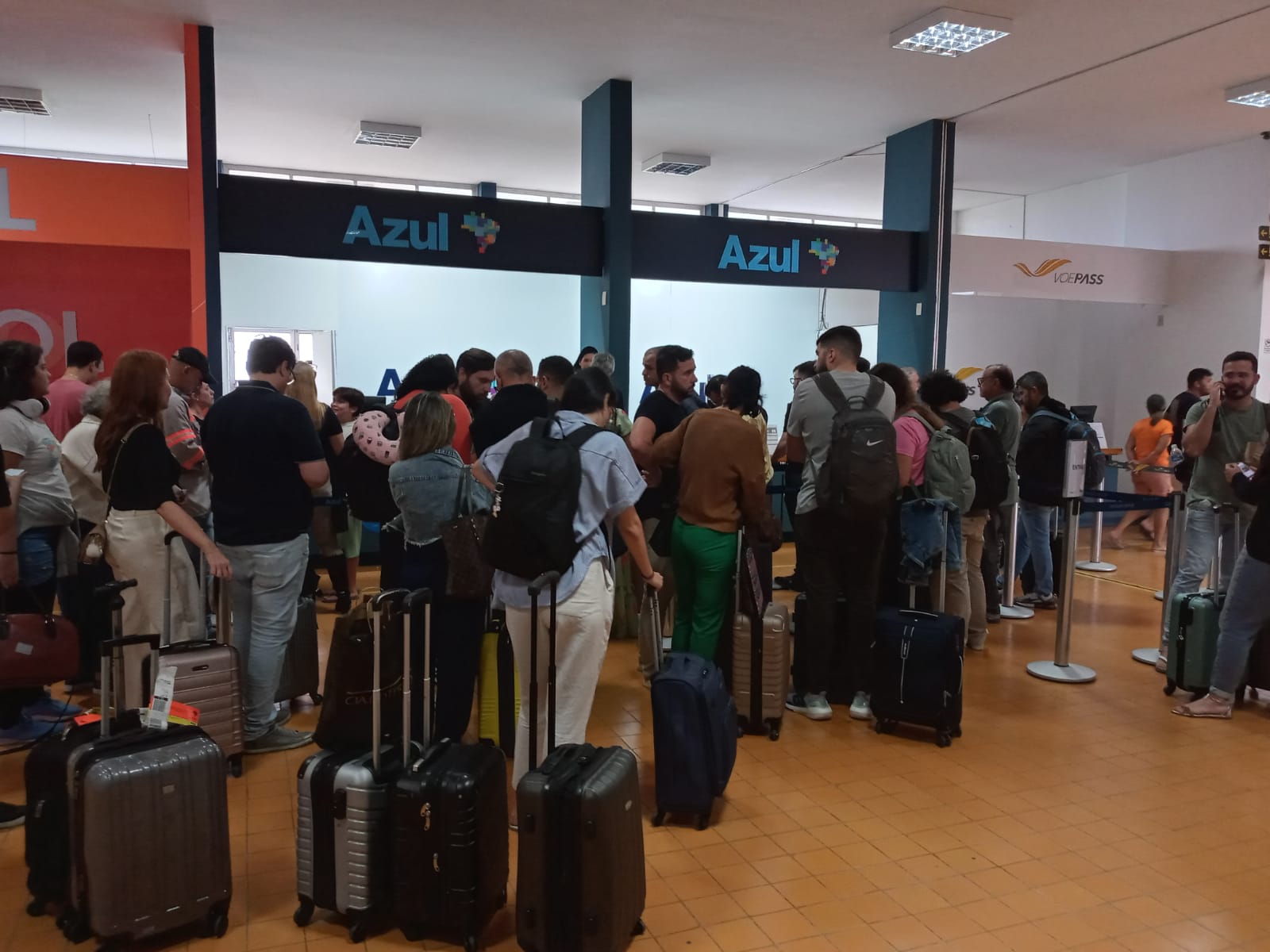 Com isso, os passageiros que aguardavam para embarcar rumo a Recife foram informados sobre o cancelamento do voo. No balcão de check-in, funcionários da Azul justificariam o ocorrido e apresentaram duas alternativas.